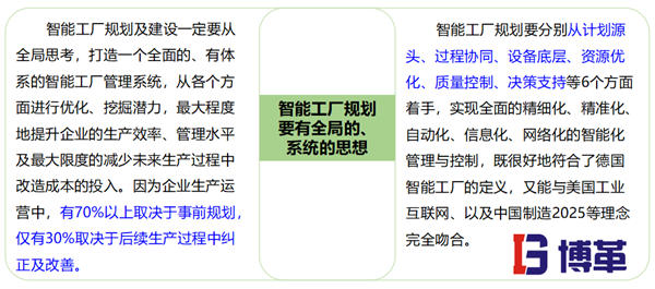 博革咨詢根據多年來的咨詢經驗,現總結出智能工廠規劃的整體框架, 以下框架涵蓋了整個智能制造規劃過程。
