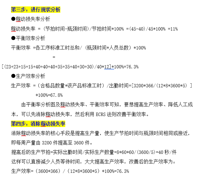 該廠某系列產品的加工工藝流程為銑→鉆→磨→組裝。該車間實行5天8小時工作制,每周的產量為3200件。該加工廠生產線平衡改善如下: