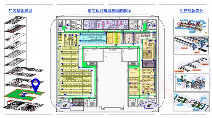 規劃和設計有效地利用設備、空間、能源和人力資源;簡化生產加工過程并降低管理難度;提高工廠可視化效果,提升工廠整體形象的同時,能夠按客戶需求節拍,強制平衡流動的生產工藝布局。