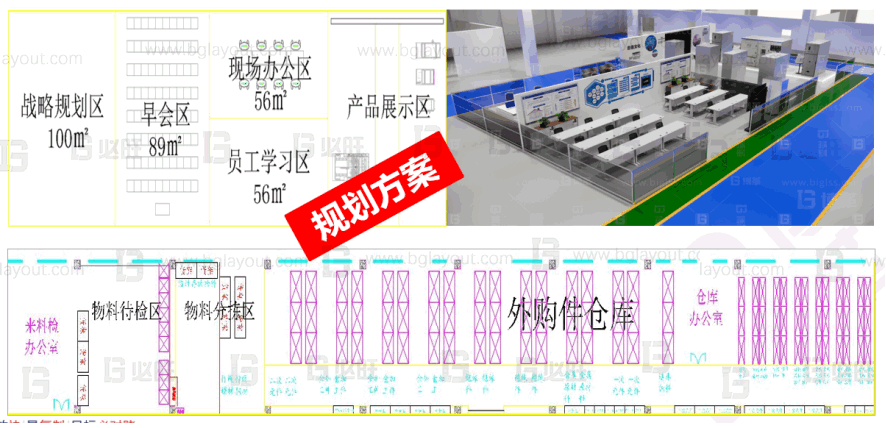 本規(guī)劃項(xiàng)目涉及對(duì)工廠進(jìn)行整體布局規(guī)劃及目視化管理設(shè)計(jì),規(guī)劃內(nèi)容包含對(duì)車(chē)間進(jìn)行智能精益布局、車(chē)間功能細(xì)化、倉(cāng)庫(kù)規(guī)劃、物流及輔助設(shè)施規(guī)劃等服務(wù)內(nèi)容,可滿足未來(lái)公司高速發(fā)展的需求。