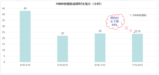 金航鈦業2023年關鍵設備快鍛機因設備故障停機4個月,2024年導入TPM活動之后,每月的停機時長逐步縮減。