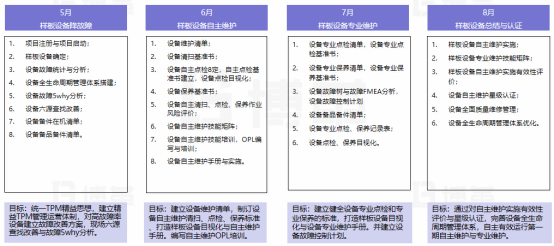 本次項目以東方集團旗下全資子公司金航鈦業為主,以快速導入TPM活動,減少設備故障停機,提產增效為第一要務。以打造TPM自主維護和專業維護團隊為核心,完善設備管理系統,構建可持續發展的設備管理團隊。