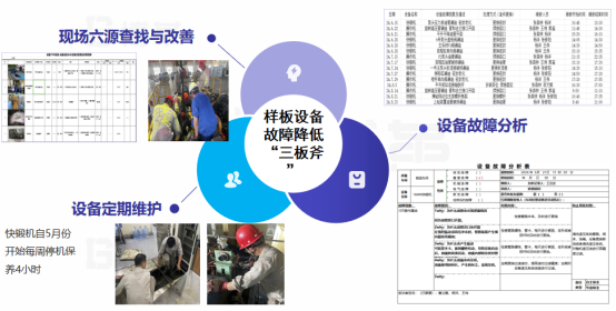 為了降低故障。博革咨詢設計了降低故障三板斧-六源查找與改善、定期維護保養、故障分析與改善,通過六源查找與改善活動一共發現并改善了40件,制訂2臺樣板機設備維護保養計劃,設備故障5why分析完成10件,并對所有分析與改善實施進行了追蹤。