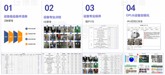 第三步建立健全設備專業維護標準,將設備專業維護分為專業點檢、專業保養、備品備件管理、設備目視化與知識教導OPL。通過設備專業維護導入,對于之前模糊的遺漏的維護點位有了清晰的認識,讓專業維護人員對什么時候要做什么有了充分的了解和準備。推動設備定期專業維護,形成每周進行一次專業維護,并逐步優化每周專業維護的內容。