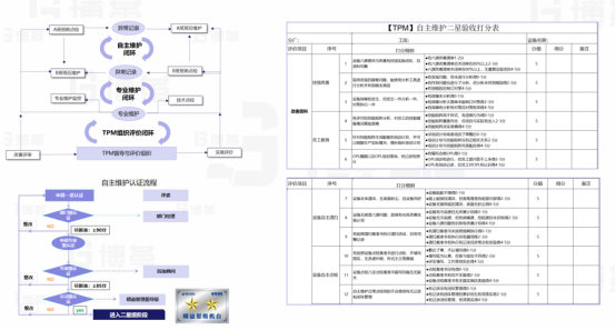 第四步完善自主維護認證體系,搭建可持續維持的自主維護現場。通過現場認證,員工能清晰感知什么才是做到位的,哪些地方可以再進一步優化,評分不是目的,完善自我認證體系才是最終目的。