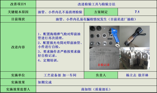 4)油管、小件檢驗,針對油管、小件內孔不易清理檢驗問題,改進檢驗工具和檢驗方法,避免漏檢情況發(fā)生。