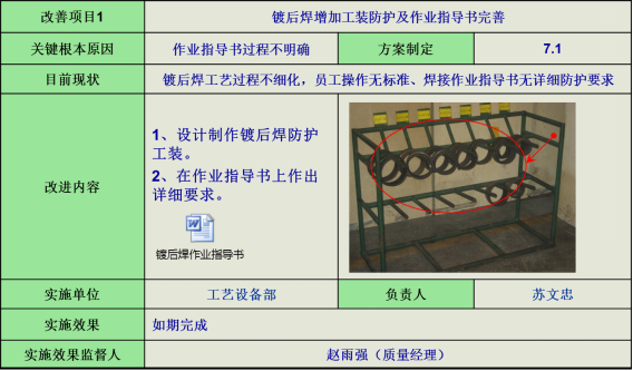 6)鍍后焊防護,針對鍍后焊作業(yè)指導書不明確問題,增加鍍后焊工裝防護,并完善作業(yè)指導書。