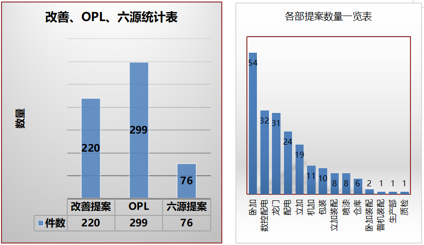 2.全員改善、OPL、六源分析,完成各類改善共595件,其中OPL299個,六源提案76個,提案改善獲獎情況從量向質(zhì)轉(zhuǎn)化