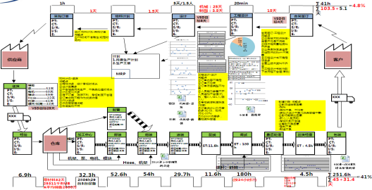 經(jīng)過價值流分析,M型耗時約60天、超大型約90天,具體各階段過程參數(shù)為: