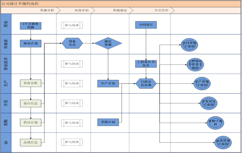 (1)計劃整合運營:通過部門別現(xiàn)有資源分析、計劃樹立所需基礎(chǔ)數(shù)據(jù)整理、召開預(yù)備協(xié)調(diào)會議(中層)、及計劃確定會議(高層+中層),將銷售計劃、供應(yīng)計劃、生產(chǎn)計劃整合同步,擬定未來訂單履約流程。