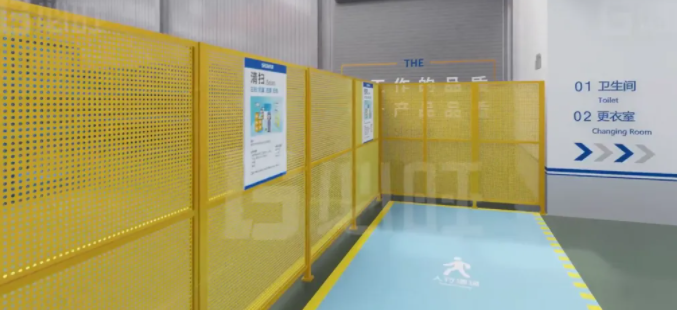 安全通道:工廠安全通道用黃色油漆標記地面線,上方設(shè)指示牌,通道保持暢通,保障緊急疏散。