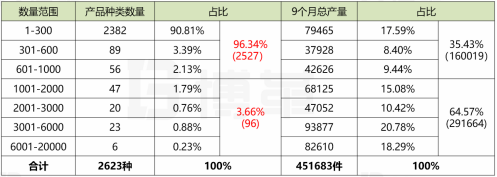 產(chǎn)品產(chǎn)量分析: