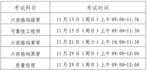 六西格瑪綠帶、六西格瑪黑帶采用線下機考。六西格瑪黃帶采用在線考試,考生需自備可上網電腦。