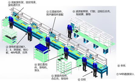 小型產(chǎn)品的工位設(shè)計與精益線、皮帶線、 倍速鏈等方式進(jìn)行連接中型產(chǎn)品的工位設(shè)計與滾筒線鏈板線、托盤線等方式進(jìn)行連接大型產(chǎn)品采用固定工位生產(chǎn)模式,主要體現(xiàn)在物料配送的流動和生產(chǎn),人員的流動。