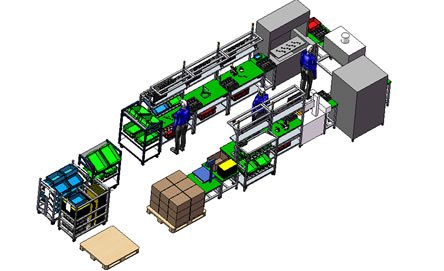 根據(jù)主打產(chǎn)品的中長期規(guī)劃,現(xiàn)場實際測量各I序生產(chǎn)節(jié)拍計算LOB效率、從效率最大化和柔性最佳以及廠房實際尺寸限制條件出發(fā),不同線體條件下的線體總體設(shè)計方案。